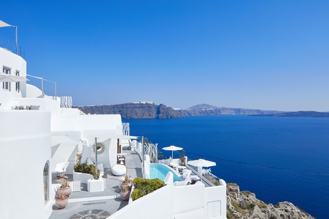 There is a range of luxurious. Stay at this 5-star luxury hotel in Santorini.